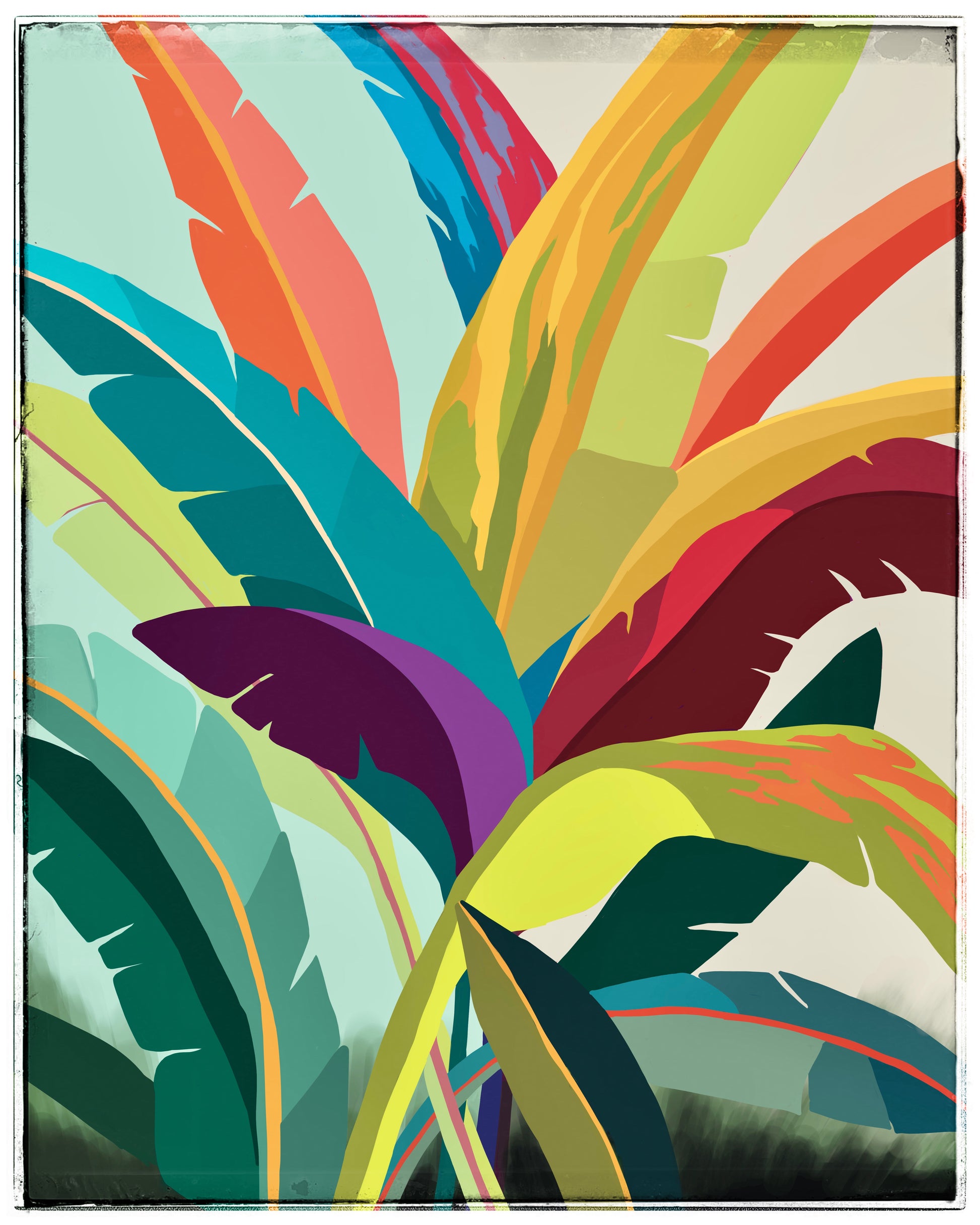 Welcome to the sunny embrace of "Soft Strength," where the world of tropical plants unfolds in a delightful acrylic wonder! This 40” x 30” painting captures the lush vitality of a tropical palm plant, inviting you to step into a serene yet vibrant paradise.